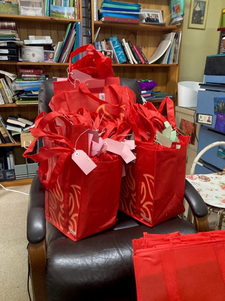 Hampers loaded into cars. They are taken for storage until close to Christmas